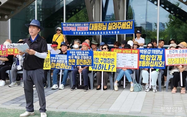 실제로 지난달 31일 대전시청에서는 선화지역주택조합원들이 사업계획승인과 착공을 앞두고 사업장이 경매로 넘겨졌다며 조합장 등의 퇴진을 촉구하는 시위를 했다.